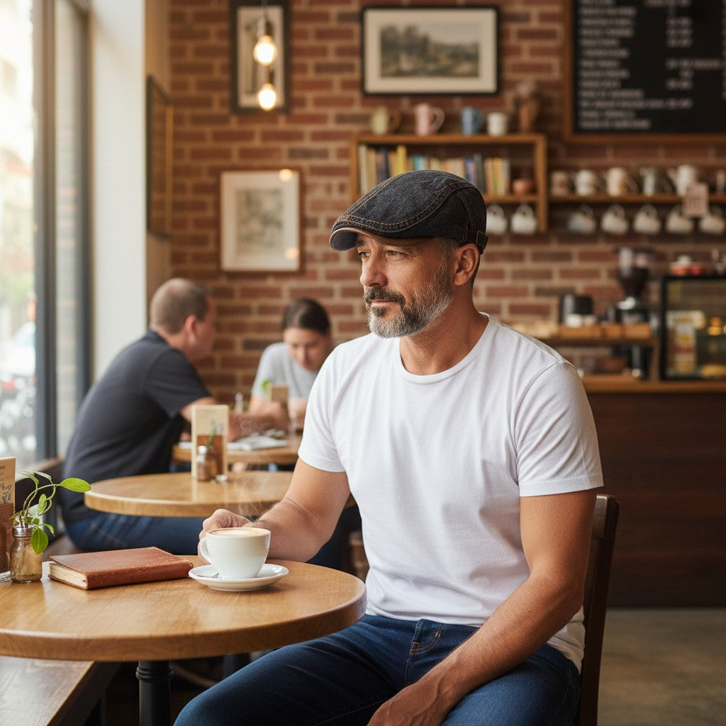 A rugged yet refined denim flat cap designed for lasting comfort and everyday versatility. Its durable cotton denim and contrast stitching give it a relaxed, timeless look that fits seamlessly into both casual and smart-casual styles.